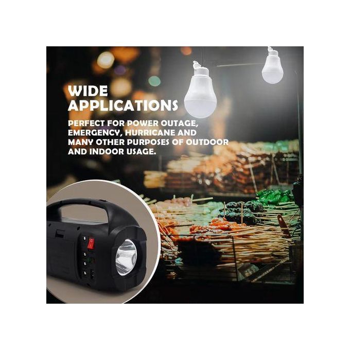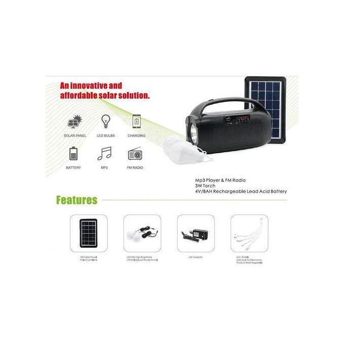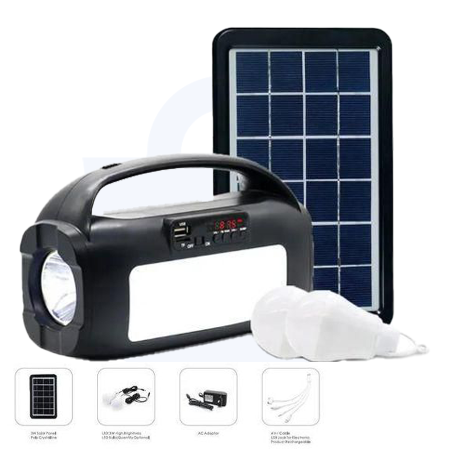 جهاز طاقة شمسية مع مصباحين ليد للإضاءة و مصباح كشاف أمامي و مصباح ليد جانبي مع لوحة طاقة شمسية
